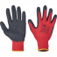Pletené bezešvé polyesterové rukavice, máčené v černém latexu na dlani a na prstech, pružná manžeta