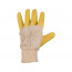Rukavice s dlaněmi a prsty máčenými ve žlutém latexu se zdrsnělým povrchem pro lepší úchop, úpletová manžeta.